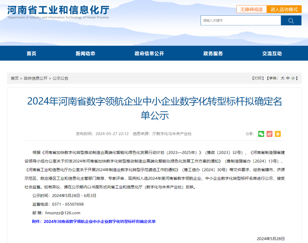 近日,河南省工信廳官網(wǎng)公示了2024年河南省數(shù)字領航企業(yè)中小企業(yè)數(shù)字化轉(zhuǎn)型標桿名單。河南威猛振動設備股份有限公司入選中小企業(yè)數(shù)字化轉(zhuǎn)型標桿名單,并順利通過公示!此次成功入選名單是威猛股份深入踐行河南省