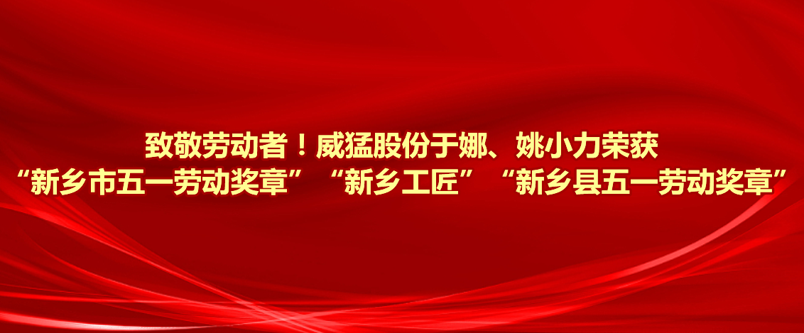 2023年4月28日,公司工會(huì)傳來(lái)多個(gè)喜訊,其中,威猛股份于娜同志榮獲新鄉(xiāng)市總工會(huì)授予的“新鄉(xiāng)市五一勞動(dòng)獎(jiǎng)?wù)隆焙托锣l(xiāng)縣總工會(huì)授予的“新鄉(xiāng)工匠”榮譽(yù)稱(chēng)號(hào),姚小力同志榮獲新鄉(xiāng)縣總工會(huì)授予的“新鄉(xiāng)縣五一勞動(dòng)