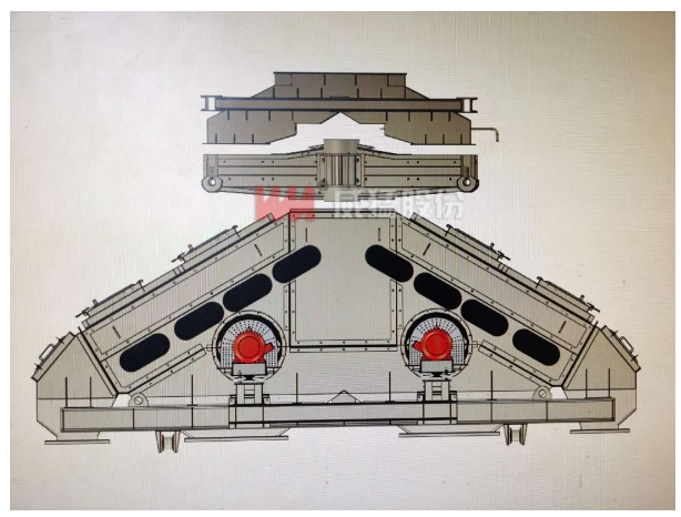 雙向復(fù)頻篩-Z采用獨(dú)特的篩體結(jié)構(gòu),使兩側(cè)篩板同時(shí)上下振動(dòng),可以對物料進(jìn)行雙向篩分,從而使篩面上的物料厚度更薄,單機(jī)處理量更大,篩分效率更高。篩子入料口設(shè)置三通分料溜槽和雙向給料機(jī),可以將一個(gè)倉口的物料分成兩份,并且將物料均勻的分布到篩子的雙向篩板上,使篩面受料更均勻。由于復(fù)頻篩篩箱不參振,所以更容易實(shí)現(xiàn)全封閉式結(jié)構(gòu),使粉塵不外泄,滿足較高的環(huán)保要求。