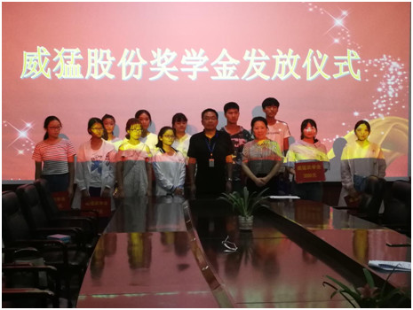 8月27日下午,2018年度“威猛獎學金”和“思民獎學金”的發(fā)放儀式在威猛股份行政樓一樓榮譽室舉行。威猛股份總經(jīng)理王思民、人力資源部經(jīng)理李惠萍和獲獎學生