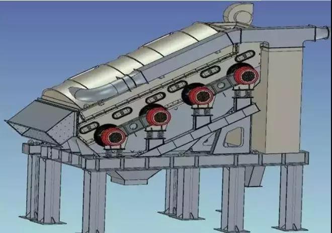 2、由于復(fù)頻篩的篩箱不參振,能夠與除塵器直接連接在一起,安裝調(diào)試方便