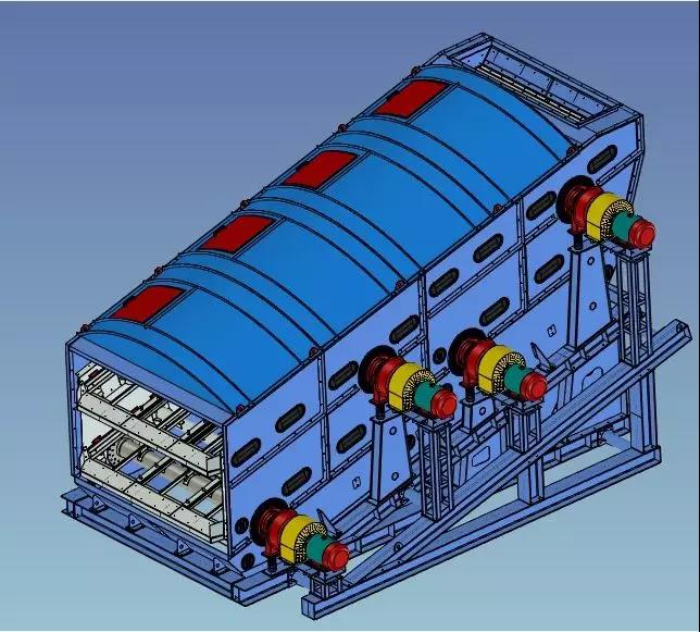 3、各個(gè)振動(dòng)篩芯分節(jié)振動(dòng),可以實(shí)現(xiàn)各段篩面高頻低幅、低頻高幅的自由調(diào)節(jié),改變了傳統(tǒng)圓振篩同振源、同振幅、同振頻的振動(dòng)方式。