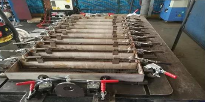使用工裝前為人工對(duì)接,由于篩網(wǎng)豎筋比較多,需要人工先對(duì)接絲軸圍板及豎筋,再用二保焊對(duì)圍板、篩網(wǎng)、豎筋進(jìn)行焊接。人工對(duì)接的產(chǎn)品容易出現(xiàn)豎筋歪斜等問(wèn)題,同時(shí)人工焊接產(chǎn)生的焊渣飛濺在篩網(wǎng)上,較難清理。