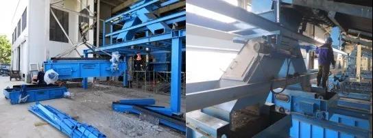 該鏈條帶式輸送機(jī)用于廚余垃圾處理的前端進(jìn)料。廚余垃圾經(jīng)過熱水解后由抓斗從儲料坑轉(zhuǎn)運(yùn)至鏈條帶式輸送機(jī)上方料倉,物料在輸送帶和刮板的帶動下移動。鏈條帶式輸送機(jī)頭部安裝均勻布料器,物料被均勻分布后才會進(jìn)入二級轉(zhuǎn)運(yùn)皮帶機(jī)。熱水解物料含水量比較高、粘性大,對于前端進(jìn)料設(shè)備而言,鏈條帶式輸送機(jī)密封性好、輸送能力大、故障率低的優(yōu)點(diǎn)很好的滿足了現(xiàn)場要求。