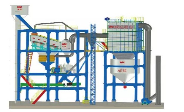 制砂樓是威猛股份研制的新型干法生產(chǎn)工藝和樓站式布局機(jī)制砂生產(chǎn)成套設(shè)備,結(jié)構(gòu)緊湊、占地面積小。主要有上料、分選、制砂、成品出料、除塵、細(xì)粉收集存儲以及自動化控制等幾大部分組成。制砂系統(tǒng)是整個生產(chǎn)系統(tǒng)的核心部分,原料在此系統(tǒng)中進(jìn)行破碎或整形、篩分風(fēng)選、顆粒級配調(diào)整以及濕度控制到成品。