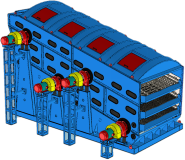 山西某建材公司原使用三層圓振篩40100,篩孔為30mm、20mm、3mm,處理量為1500t/h,兩年的時(shí)間內(nèi)更換了2個(gè)設(shè)備廠家,均出現(xiàn)篩分效率低下、篩幫撕裂、橫梁斷裂等故障。經(jīng)過我公司改造成3WFPS-X-36100后,處理量和篩分效率均到達(dá)客戶要求,同時(shí)解決了篩幫橫梁頻繁斷裂等隱患。