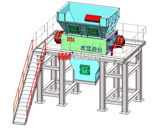 為解決大件垃圾上料難的問題,威猛股份通過使用“Z”字型鏈板給料機(jī)進(jìn)行上料,較低的上料高度可以使鏟車或運(yùn)輸車直接上料。針對(duì)大件垃圾物料大、進(jìn)料難的特點(diǎn),針對(duì)性的采用雙軸剪切式撕碎機(jī)將大件垃圾進(jìn)行破碎。采用低矮寬大的進(jìn)料口,可以滿足大件垃圾的破碎。在破碎過程中采用液壓喂料器進(jìn)行喂料,可根據(jù)主機(jī)電流自動(dòng)調(diào)節(jié)推料箱進(jìn)、退壓料頻率與行程的喂料。