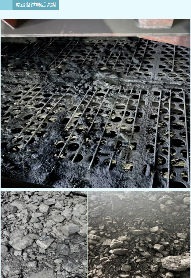 因現(xiàn)場(chǎng)原煤濕粘等因素,兩臺(tái)香蕉篩出現(xiàn)嚴(yán)重堵孔現(xiàn)象,篩分效率降低,從而導(dǎo)致篩不透情況頻繁出現(xiàn),并嚴(yán)重影響到塊煤的銷售與增產(chǎn)計(jì)劃。