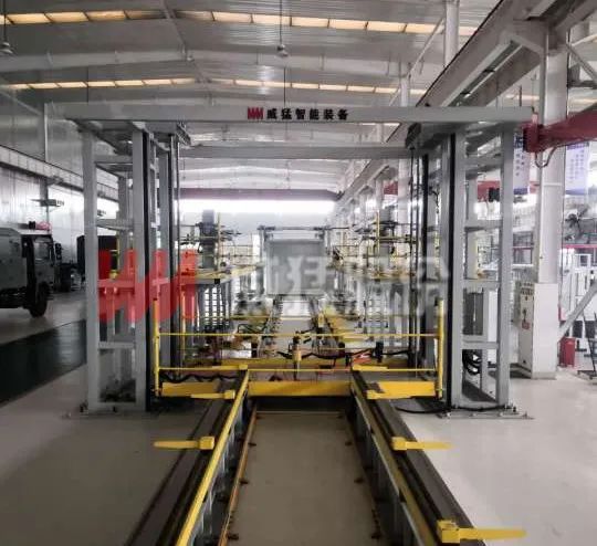 威猛股份為河南新鄉(xiāng)某專汽公司設(shè)計(jì)的柔性方艙裝配生產(chǎn)線已正式投入使用,柔性生產(chǎn)線共分為八個(gè)工位,每個(gè)工位由兩臺(tái)焊接機(jī)器人、平移軌道、升降軌道、方艙定位支架構(gòu)成,用于對(duì)板件角部、底部、頂部的焊接作業(yè)。該柔